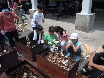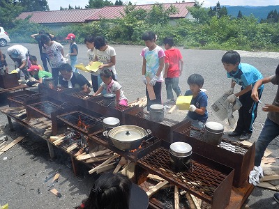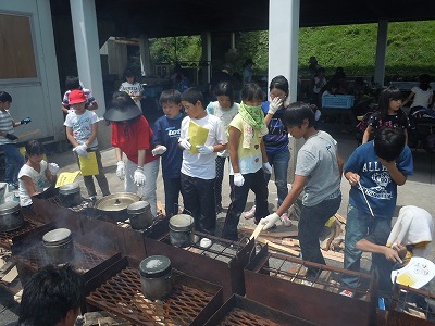 カレーでは、ジャガイモ、ニンジン、タマネギの皮むきとカット作業がありました。