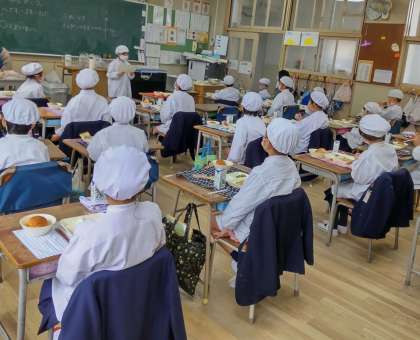 今日の給食は、大人気メニュー「和風焼きそば」。