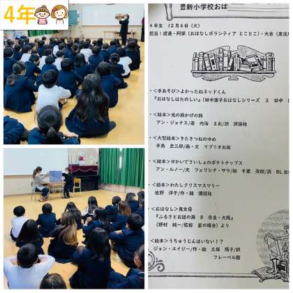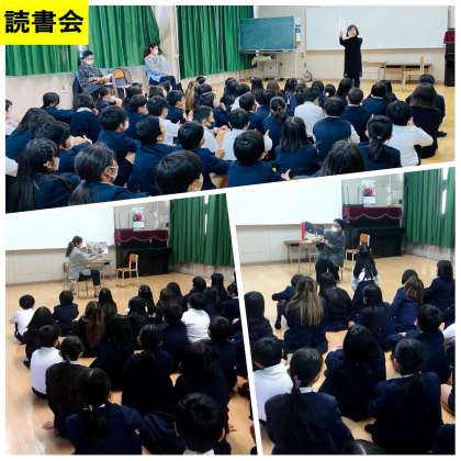 4時間目に『読書会』がありました。大・小の大きさのちがう絵本や手あそびをまじえた絵本を読んでいただきました。みんなで身近なお話や昔話を楽しむことができました。