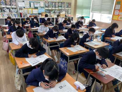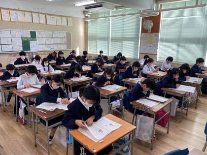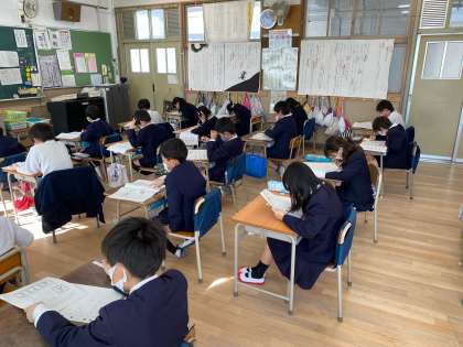 今日は、算数、理科の二教科。プラス、5、6年は英語の三教科です。