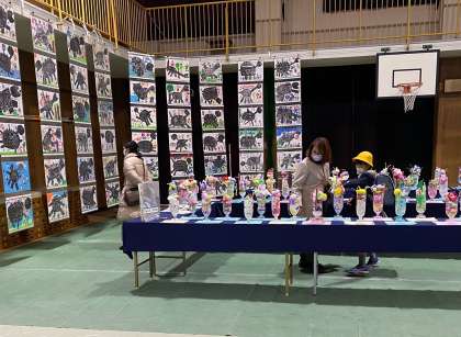 親子で、あるいは他の学年の作品にも鑑賞していただけます。懇談会の前後の時間を上手に利用していただけると助かります。