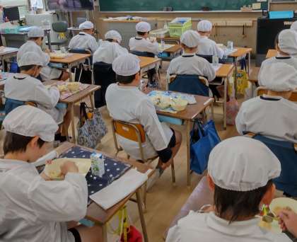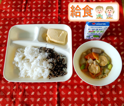 手作りの卵どうふや、ご飯には魚ひじきそぼろを添えて、今日もおいしい給食ごちそうさまでした!