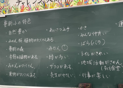5年生は、総合的な学習の時間に、オーストラリアのパークデール小学校とオンラインでの交流を継続しています。今回は、豊新小学校のことを紹介する動画を撮って送ろう!ということで、何を紹介するかを考えるため、豊新小学校の特色について改めて考えてみました。