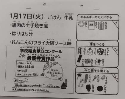 今日の給食は、学校給食献立コンクール最優秀賞作品です。