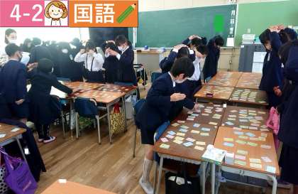 新出漢字を学習した後に、百人一首をしました。上の句の1文字目を聞いただけで、下の句をすぐに取る子もいました。