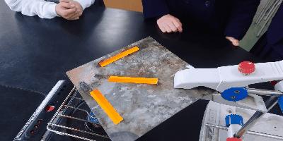 『どんどん赤くなってる!』『鉄の板より銅の板の方が速く熱が伝わってる!』といった声があがりました。