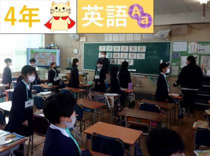 「地図を見ながら、どの場所かを考えよう」をめあてに学習しました。『Turn right』などの英語を聞いてどこを向くかを実際に体験しながら考えました。