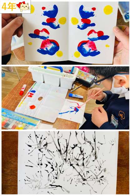 ・デカルコマニーで絵の具の配置によって、いろんな模様ができることがおもしろかったです。