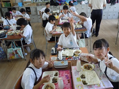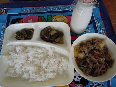 ナスが苦手な子が多少、目立ちましたが、最終的にはどのクラスも食缶は空っぽでした。