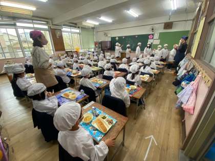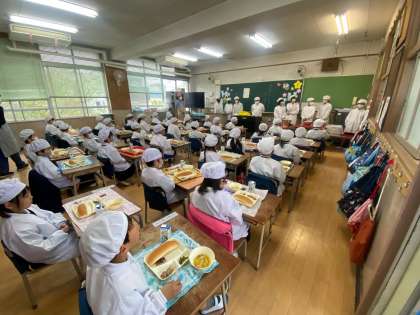 1年生はまだみんな緊張してたけど、給食が目の前に運ばれてきたらみんな笑顔に