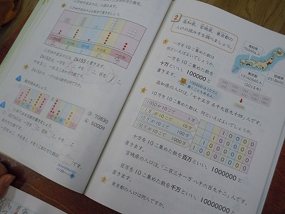 10万、100万、1000万の位の数字まで、一気に大きくなり、教科書の問題の次に、ドリルの問題にも挑戦していました。