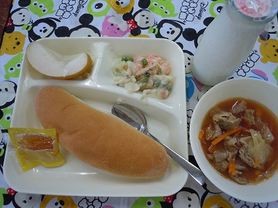 エビグラタンは子どもたちに大人気で、どのクラスもすぐに食缶は空っぽです。