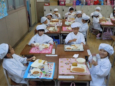 お替りで大盛りにしてもらって喜んでいる子がたくさんいました。