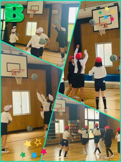 体育(講堂)でバスケットボールに取り組んでいます。初めての今回は4つのチームでシュート対決をしました。各チーム作戦を立て、並んで順番にシュートを打つチーム、リング下に集まっていろいろな角度から打つチームなどがありました。自分たちで行動を想像し、考えて取り組み、1回戦の結果をもとに2回戦はどんな作戦で行くか練り直して、取り組むことができました。