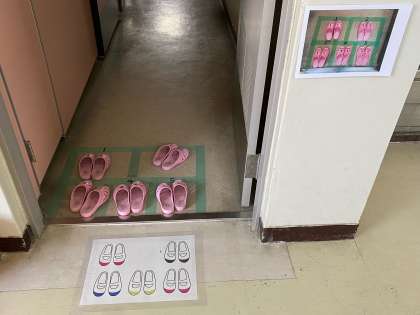 今年度、良い生活習慣の一つとして、あいさつの他に『くつをそろえてぬぐ』を身につけるように取り組んでいます。