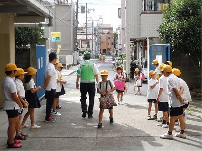 運営委員さんと、曜日ごとに決められた有志の児童さんが8時10分過ぎくらいから正門と裏門に立ち、登校する児童に大きな声で「おはようございます」と声をかけてくれています。