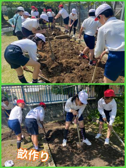 また実験したインゲン豆を植え替えするために学習園に畝を作りました。2時間かかってようやく完成し、達成感がありました。