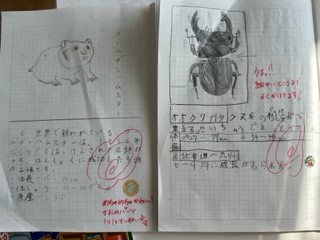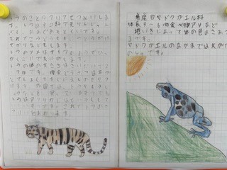 先週くらいから自主学習の宿題を3年生では出しております。その中でも、よく観察して絵を描いている子がいましたので、紹介します。体長や体重、生息地などみんなが興味がでる内容をたくさん書いてくれていました。自主学習でなにをすればいいのか迷っている人は、自主学習のススメを見ましょう!!