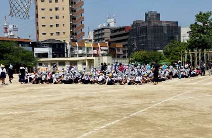 さらに、けむりを吸いこまないようにハンカチやタオルで鼻と口を押さえて運動場に逃げることも学習しました。