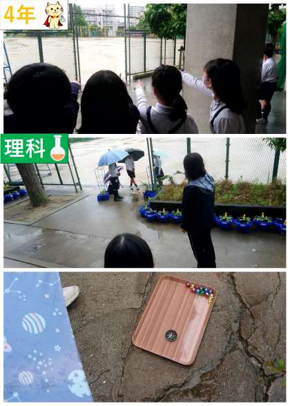 『地面を流れる水のゆくえ』の単元に入りました。地面にふった雨水の流れやゆくえを調べました。ビー玉を使うことで、地面を流れる水は、高いところから低いところに向かって流れることがわかりました。