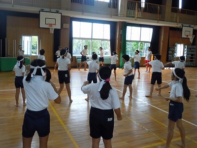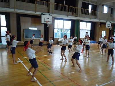 赤団と白団にそれぞれ分かれ、6年生のリーダーを中心に、大きな声を出し、三三七拍子など応援合戦の練習に励んでいました。