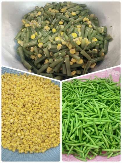 今日のさんどまめは生のさんどまめで、湯がいてからコーンと炒めています。
