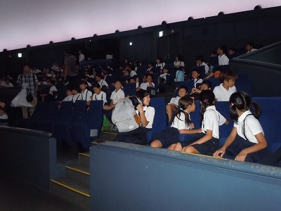 プラネタリウムでは、大阪の夏の夜空の星や星座が映し出され、星や星座の名前や動きをわかりやく楽しい説明がありました。