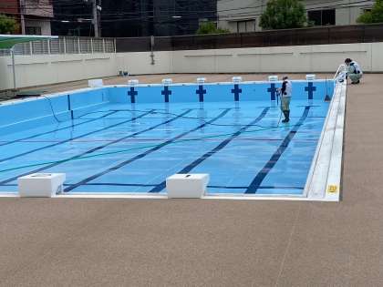 すっかり綺麗になったプール…水色がとても鮮やかになりました!