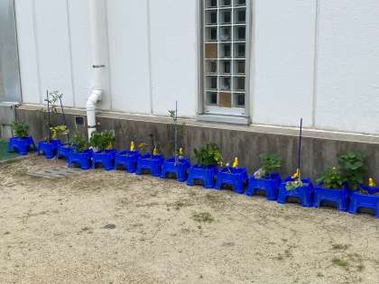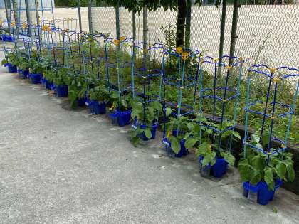 1年生はアサガオ、2年生は夏野菜をそれぞれ育てています。この5日間ほどであっと言う間に大きくなりました♪