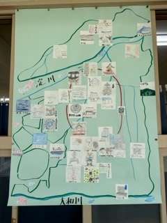 先週、社会見学であべのハルカスに行ってきました。ハルカスから見えた景色から見えたものを画用紙に描いて一枚の紙に貼り付けました。何を描くのか担当を決めて、みんなで協力して完成しました。「〇〇描いていいですか?」「もう一枚描いていいですか?」など、積極的に描いてくれた子もたくさんいました。廊下に掲示しています。ぜひ、見てあげてください!