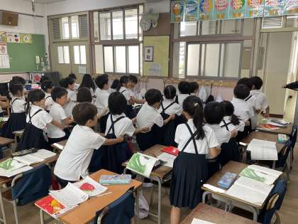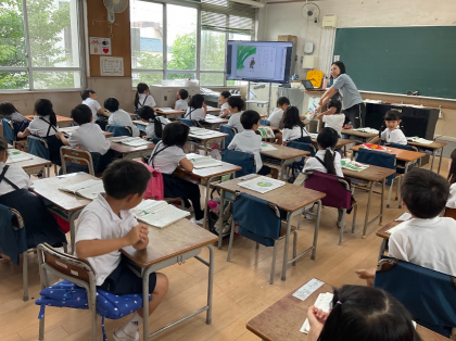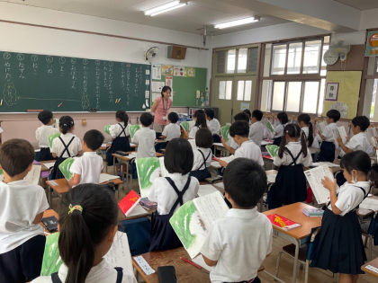 1組も2組も『おおきなかぶ』を音読しています!列ごとにおじいさんやおばあさん、まご、いぬ、ねこ、ねずみになりきって「うんとこしょ どっこいしょ」とかぶを抜いています。だんだん大きな声で読むことができました。