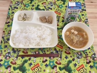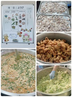 豚のたつたあげも子どもたちに大人気の献立です。揚げ物はおいしいですよね(笑)