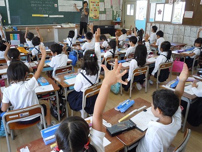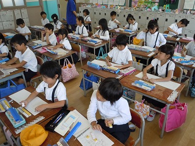 このクラスでは、1ケタ+1ケタのたし算ですが、答えが10より大きくなる、すなわち指を折って数えるにも足りない計算の仕方を学習していました。