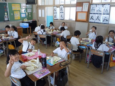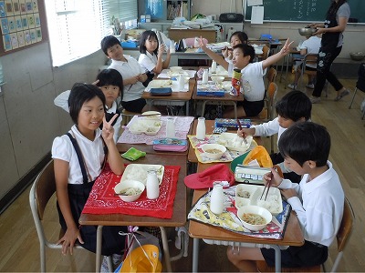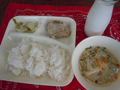 「にゅうめん」は、うすあげ、ニンジン、玉ねぎ、薬味の青ネギが入っていて、子どもたちも好んで食べていました。あっさりお出汁もおいしかったです。