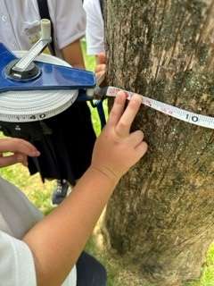今日は、巻き尺を使って学校の中にあるいろんなものの長さを測りに行きました。普段、測れない大きなものでも測ることができ、班の人と協力し、相談しながら様々なものの長さを測りました。「予想してた長さより長かった。」「予想と同じだった!」など、意欲的な声がたくさん聞こえてきました。また、授業のまとめとして巻き尺のよさは何かをみんなで考えました。