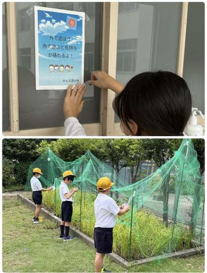 田んぼにつるすCDを持ってきてほしいとみんなに呼びかけたり、みんな遊び係がポスターを作ったりと話し合って出た意見をすぐに実践していて素晴らしいです。