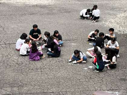 さて、学校を出て、上新庄駅に向かう途中で、さっそく5年生の親子に出会いました。