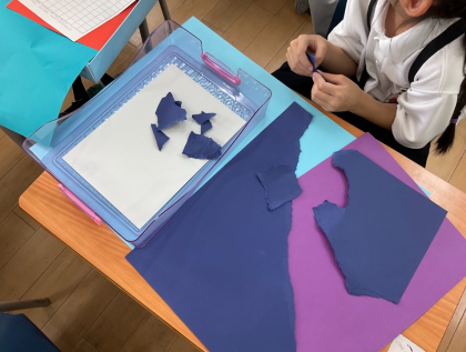図画工作科で「やぶいたかたちからうまれたよ」をしました。