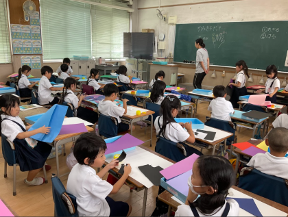 画用紙や新聞、チラシ、折り紙などをやぶいて様々な動物や植物をつくりました。つぼ糊の使い方を確認し、パスで模様を描いたり絵を描いたりしました!