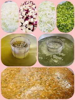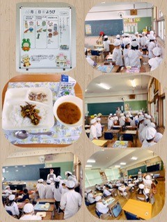 今日のさつまいものみそ汁のだしは煮干しでだしをとっています。さつまいもの甘さと煮干しおだしの風味で仕上がっています。