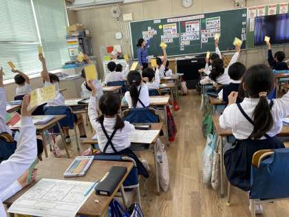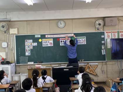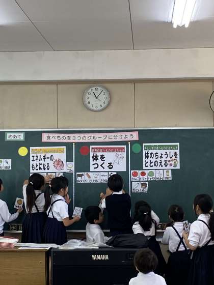 いろいろな食材を黄(エネルギーのもとになる)・赤(体をつくる)・緑(体の調子を整える)のグループに分ける学習をしました。