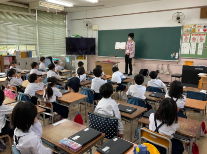 1年生は、毎月1回、地域のボランティア「がらがらどん」による
