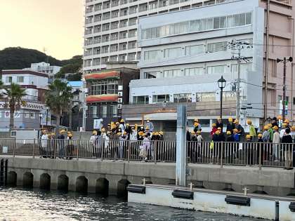 温泉のにおいを感じながら、岸壁へ向かいます。