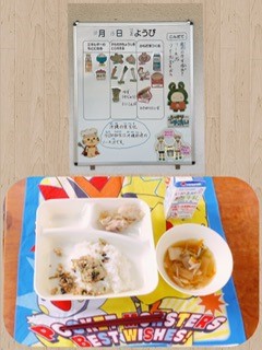 ツナ大豆そぼろはごはんにそえたら、食べやすいみたいで多くの子どもたちがおかわりしてました。