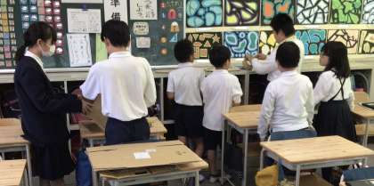 僕たちの班は、例えば6年生と1年生が看板だったり2年生と4年生が呼びかけの内容だったりして役割を分け活動しました。