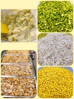 もやしには、ビタミンB1,ビタミンB2,ビタミンCなどの美容効果がある高いと言われています。コーンも食物繊維が豊富です。