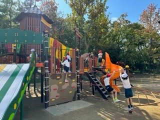 昨日、服部緑地公園へ行ってきました。天気はとてもいい天気できれいな青空が広がっていました。公園に着くと、人も多くなく快適に過ごすことができました。遊具を使って楽しんだり、広い草原で鬼ごっこをしたりしていました。お弁当タイムでは、楽しく話しながら食べていました。