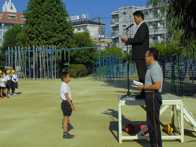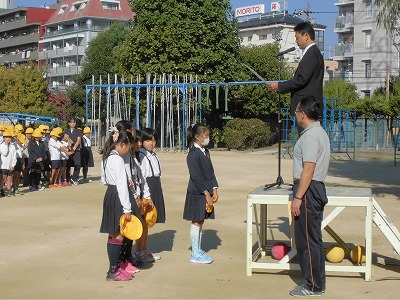 今朝の全校朝会では、豊新小学校の子どもたちがスポーツでがんばって優秀な成績をおさめたことを紹介・披露しました。