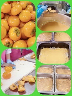初めて柿を食べた児童がいて、甘くておいしいと感動していました。