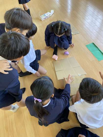 生活科の学習で作ったおもちゃを使って、おもちゃランドをしました。